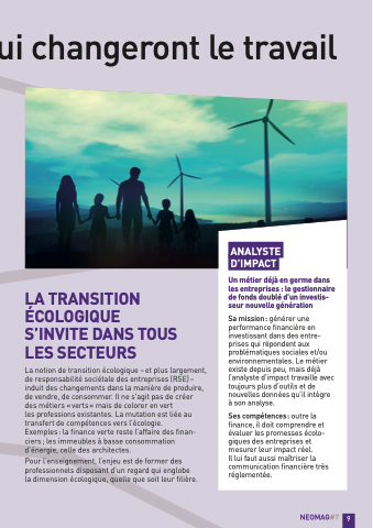 Ses compétences: outre la finance, il doit comprendre et évaluer les promesses écolo- giques des entreprises et mesurer leur impact réel.